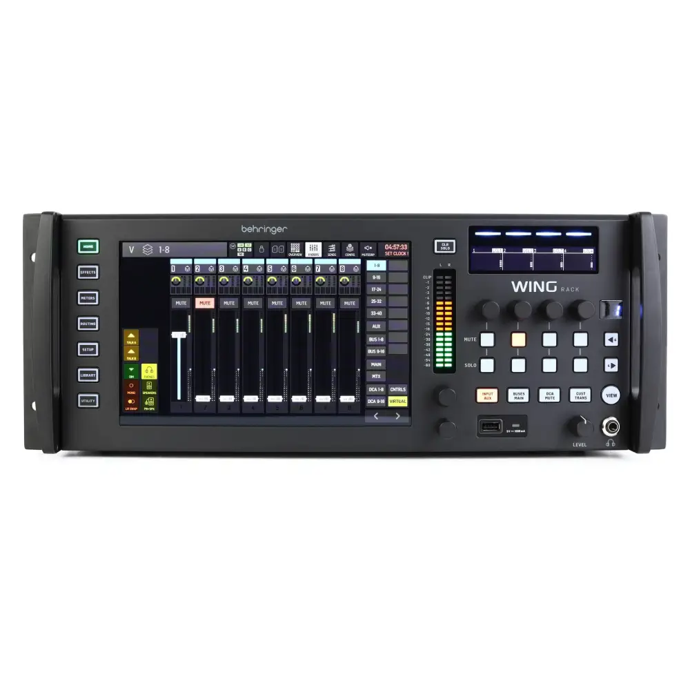 Mezcladora digital profesional rack de 48 canales con preamplificadores MIDAS, DSP avanzado y grabación multipista integrada.